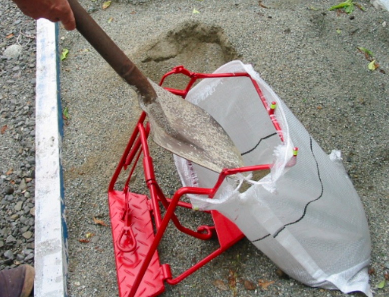 仕様用途 土のう製作 材質 本体は鉄製、バネはステンレス製 基本カラー 赤・水色(特注カラーはご相談ください) 補償 購入後5年以内なら1回まで無償修理に対応いたします。(送料ご負担ください) -